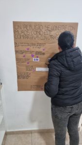 Fati Jadad, activista por la libertad del pueblo saharaui y la igualdad de género, expuso la situación del Sáhara Occidental, subrayando que «el colonialismo no es cosa del pasado”, sino que seguimos teniendo “una colonia en África». Destacó la represión que sufren las mujeres saharauis en los territorios ocupados, sometidas a vigilancia, acoso, torturas y agresiones sexuales por parte de las fuerzas de ocupación marroquíes. También denunció la discriminación en el acceso a la educación y el empleo, así como la falta de acción de la comunidad internacional.