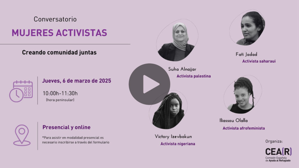 Otro año más, en CEAR nos sumamos a la conmemoración del Día Internacional de la Mujer (8M) con una serie de actividades que buscan reflexionar, visibilizar y reivindicar el papel de las mujeres en la sociedad, especialmente en el ámbito de la migraciónOtro año más, en CEAR nos sumamos a la conmemoración del Día Internacional de la Mujer (8M) con una serie de actividades que buscan reflexionar, visibilizar y reivindicar el papel de las mujeres en la sociedad, especialmente en el ámbito de la migración y el refugio. Desde espacios de expresión colectiva hasta la movilización en las calles, estas iniciativas nos han permitido compartir nuestras voces y exigir igualdad y justicia. y el refugio.