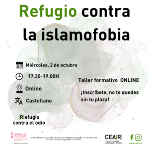 Refugio contra el Odio proyecto de CEAR Alicante lanza la acción formativa “Refugio contra la Islamofobia”.
