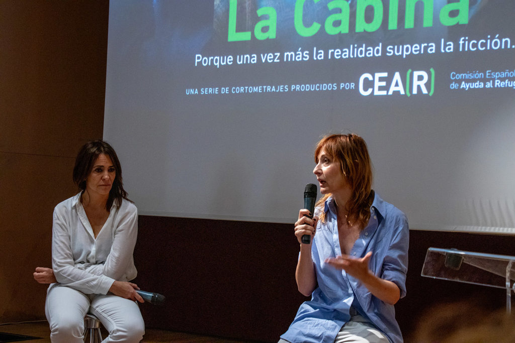 Para protagonizar estos cortos contamos con la participación de reconocidas actrices y actores del cine español como Nathalie Poza, Melani Olivares, Pepón Nieto y Emilio Buale, quienes no solo tuvieron una total disponibilidad, sino que demostraron su compromiso absoluto desde el primer momento que les propusimos la idea. Contar además con este gran elenco reafirmaba la idea de que lo que les sucede a las personas migrantes y refugiadas podría afectarnos a todas en algún momento de nuestras vidas. “Es una vergüenza lo que está pasando. Habría que estar constantemente hablando de esto porque desde el punto de vista político pasan los años y miles de personas siguen estancadas”, señaló la actriz Nathalie Poza, quien quiso sumarse a esta iniciativa para alzar la voz a favor de las personas refugiadas y acudió, junto a Melani Olivares, al preestreno de los cortos durante la presentación de nuestro Informe Anual.