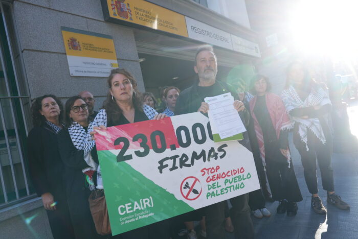 Antes del acto, registramos oficialmente en el Ministerio de la Presidencia más de 230.000 firmas ciudadanas recogidas en el marco de nuestra campaña contra el genocidio del pueblo palestino, que sigue activa. A través de esta iniciativa, pedimos a España que lidere un cambio de paradigma internacional para detener la violencia y defender los derechos humanos. Entre las medidas reclamadas se incluyen un embargo integral de armas a Israel, la suspensión del Acuerdo de Asociación UE-Israel, sanciones internacionales y garantizar la protección de las personas palestinas refugiadas.