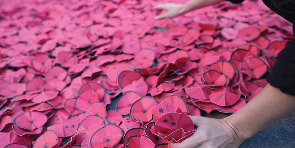 Algunas de las amapolas que cubrieron la plaza fueron elaboradas en talleres internos que organizamos en la delegación de Madrid y en la oficina de Servicios Centrales. Además, desde distintas delegaciones de CEAR también nos sumamos a las manifestaciones convocadas en solidaridad con Palestina en todo el territorio.