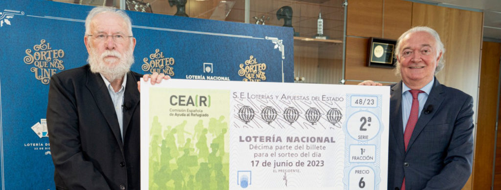 Para el Sorteo de Lotería Nacional de este sábado 17 de junio la imagen de CEAR se verá en los 10 millones de décimos que se han repartido en los puntos de venta de Loterías, lo que permitirá que este Día Mundial llegue a todos los lugares de la geografía española. El Sorteo repartirá 42 millones de euros en premios, entre los que destacan un primer premio de 600.000 euros a la serie o un segundo de 120.000 euros a la serie.